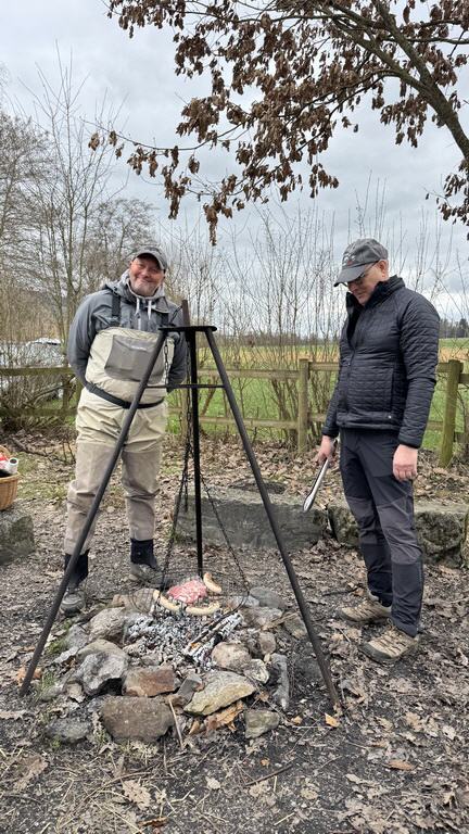 Fünf von uns haben es sich aber nicht nehmen lassen, die Streamer erstmals dieses Jahr durch die Suhre zu ziehen. Obwohl das Wasser noch sehr kühl war und wir keine Fischbewegungen sahen, hat es trotzdem Spass gemacht und schon bald brannte das Feuer bei unserem Lieblingsplatz fürs Zmittag. Würste und Plätzlis brutzelten auf dem Grill und ein paar Bierflaschen wurden geleert. Es fanden rege Diskussionen über aktuelle Themen und die geplanten Ausflüge fürs bevorstehende Fischerjahr statt. Wie immer hat das Beisammensein viel Freude und Spass gemacht.
