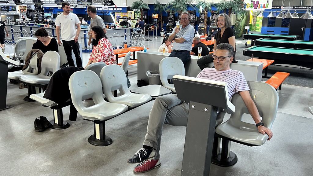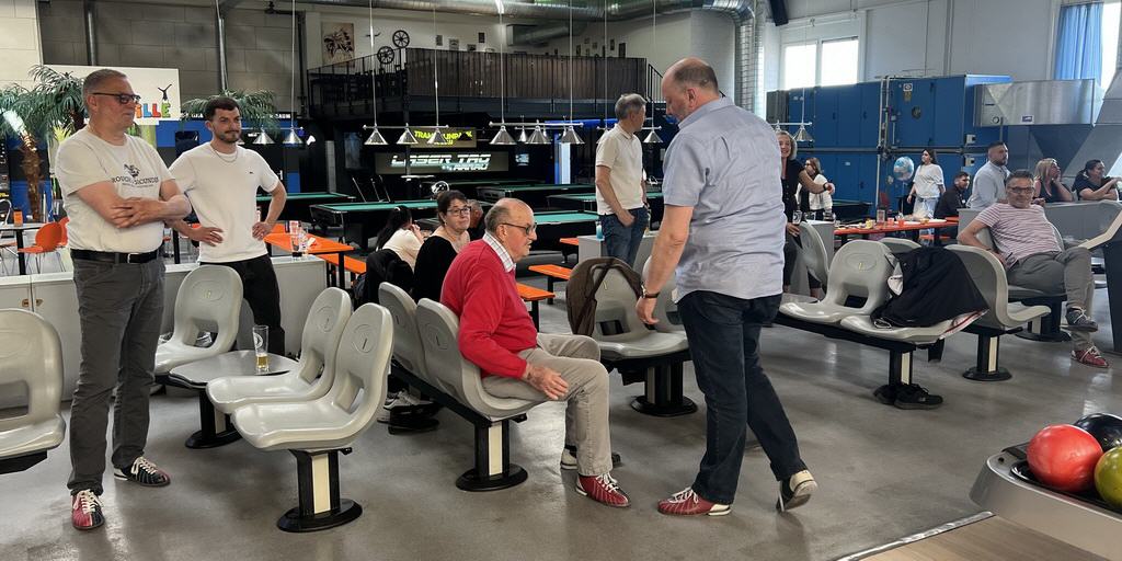 Während rund zwei Stunden genossen wir spannende Duelle auf zwei benachbarten Bahnen und genehmigten uns dazu ein paar kalte Getränke und kleine Snacks. Was besonders cool war, schon beim Betreten des Bowlingcenters konnten wir auf der grossen Anzeigetafel hinter den Bahnen unser Vereinslogo erspähen, ein kleines, aber sehr schönes Detail, an dem sich alle erfreuen konnten. Spätestens nach den ersten paar Würfen war bei allen der Ehrgeiz geweckt und die Zeit verging wie im Flug.
