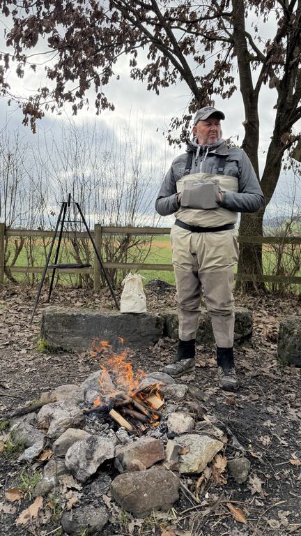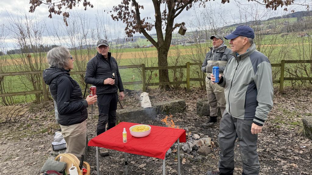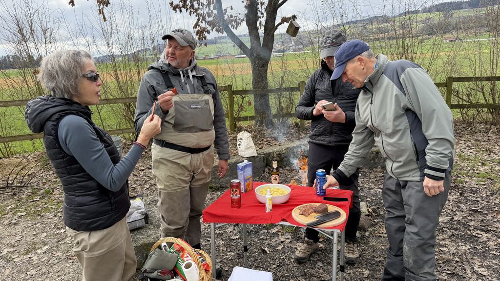 Fünf von uns haben es sich aber nicht nehmen lassen, die Streamer erstmals dieses Jahr durch die Suhre zu ziehen. Obwohl das Wasser noch sehr kühl war und wir keine Fischbewegungen sahen, hat es trotzdem Spass gemacht und schon bald brannte das Feuer bei unserem Lieblingsplatz fürs Zmittag. Würste und Plätzlis brutzelten auf dem Grill und ein paar Bierflaschen wurden geleert. Es fanden rege Diskussionen über aktuelle Themen und die geplanten Ausflüge fürs bevorstehende Fischerjahr statt. Wie immer hat das Beisammensein viel Freude und Spass gemacht.